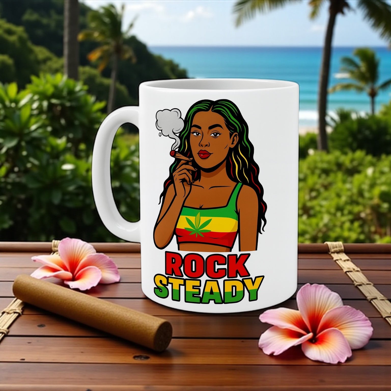Bring bold energy to your mornings with this vibrant Rock Steady Rasta Girl Mug ☕✨